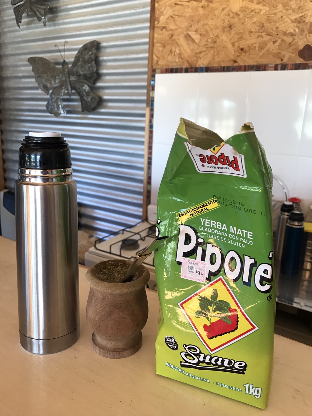 At the end, we were given a free cup of mate (pronounced mah teh). It’s a traditional drink shared all over S. America. They have a big flask of hot water (80degC) under one arm, and hold a decorated cup full of Gerba leaves in the other. They add the hot water to the leaves and sip the mate tea through a pretty straw which sieves through the leaves at the bottom of the cup. When they are finished, they add hot water to the cup and offer it to their friend. It tastes like a strong herbal tea. This one cup of mate tea can be shared between any number of people, including strangers. We’ve seen people all over our travels carrying a flask under one arm. It’s almost the social equivalent of our alcohol. We were warned not to say thank you for the Mate until we wanted no more, as that word is the polite signal that you’ve had enough.