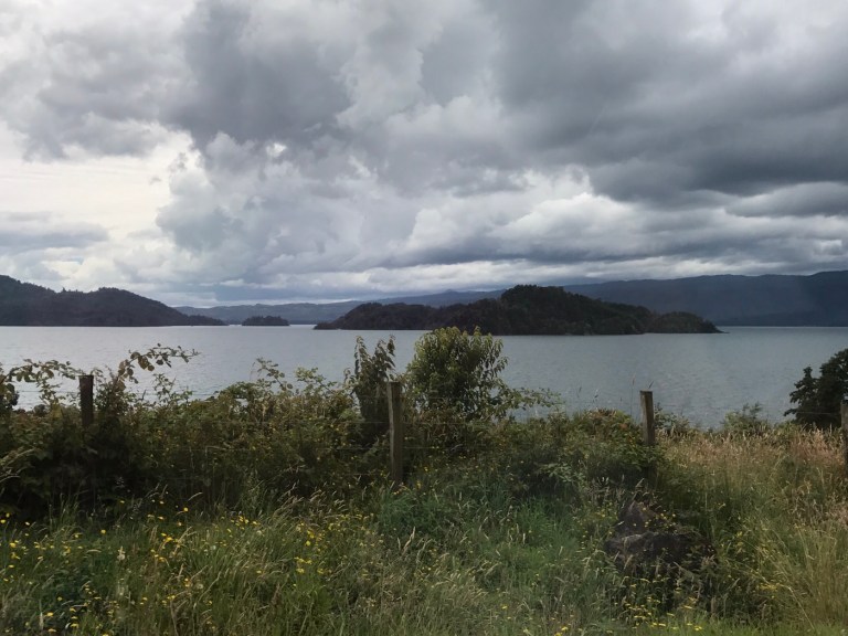 At the end of a long day driving, we found a tiny, pretty campsite right on the banks of Lago Puyehue in a small town called Entre Lagos.