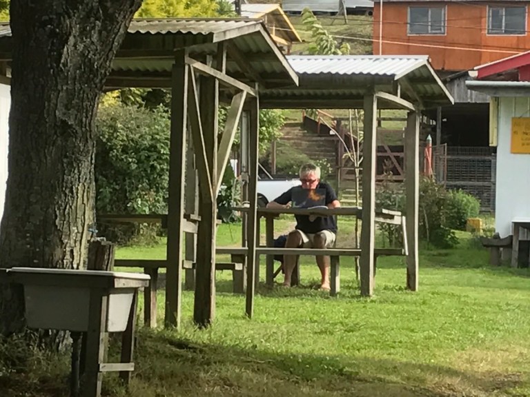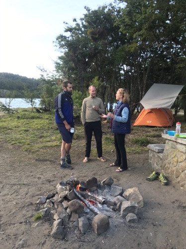 We went for an evening stroll before supper and found 2 bikes, with 2 tents and 2 young Englishmen! They’d just finished cycling the Carreterra Austral and were heading north. They couldn’t believe their luck when we offered them a gin and tonic! They were such good mates, having met at Liverpool university. One was returning soon to the UK and his girlfriend and the other to a new job with a cycling adventure company being set up in Cuba.
