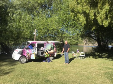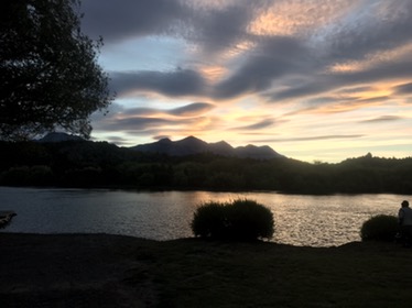 By the time we’d set up our spot and eaten, almost everyone had gone leaving up with the whole lakeside area to ourselves. Neil visited the owner who was an elderly lady with blonde hair and had had a Welsh speaking Mum. He came back saying she even looked like me in 20 years and rather gallantly set up my Welsh flags over the campervan. I hope admitting to this here doesn’t loose him too many friends!