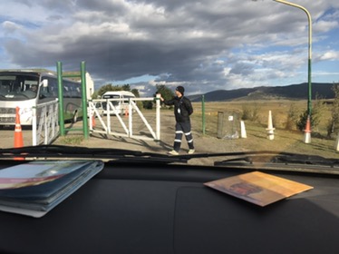 This time we decided to hide our contraband veggies in my pockets since the lemons were essential for G&Ts, the onions for cooking, and I was just a middle aged woman with a fat tummy. But in the end it was an easy crossing with a cursory search and we were first through. Big tour busses were coming the other way to visit El Calefate so we were glad to have an early start.