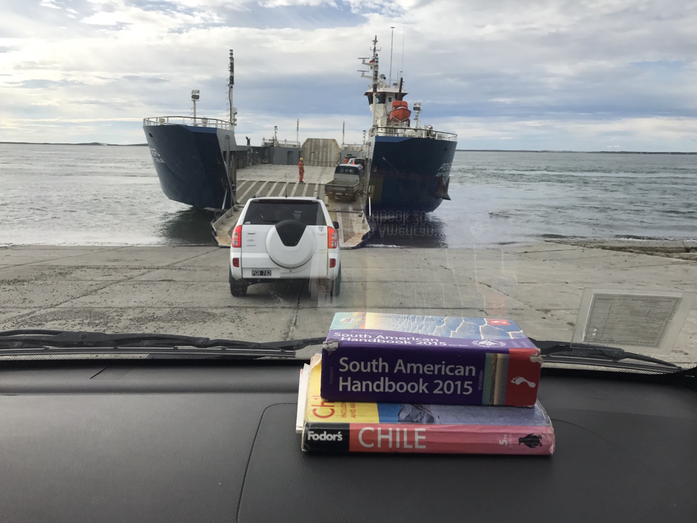 Obviously we are now experts at these borders, knowing the procedure and finding the right queue. Slightly worryingly, our passport pages are filling up at quite a rate and mine is almost full. We were through in no time and arrived just in time for the 9am crossing to Tierra del Fuego. It was great fun with huge industrial equipment being transported on top of massive lorries on the open ferry, being taken to the oil refineries or construction companies. In the water at the front of the ferry, Neil saw a big white object gliding through the waters below, which may have been a shark or a whale. Other Argentinians were equally excited.