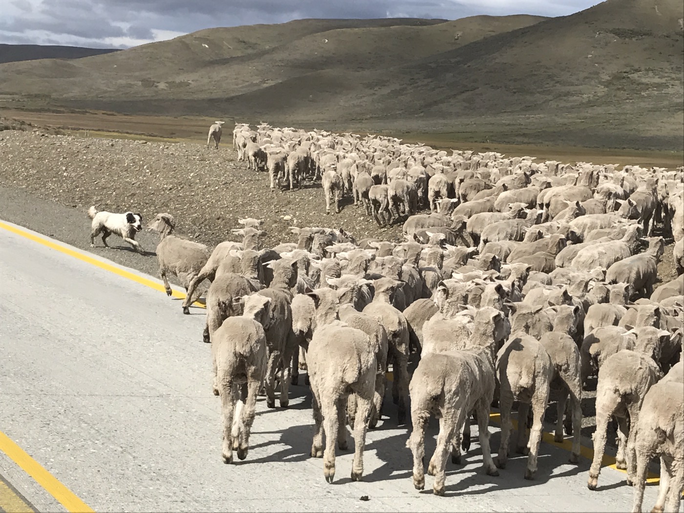 Just before the border, we stopped to hide our fruit and veg and have a coffee. Right behind us we’re thousands(?) of sheep being herded together . We watched with fascination as the local ranchers sat astride their horses doing very little, while their hugely talented and enthusiastic sheep dogs sped around these thousands of sheep, leading them to new ‘pastures’. The dogs were having a wonderful time, coordinating with each other to ambush a stray sheep and force it to rejoin its flock. We were a most impressed audience.