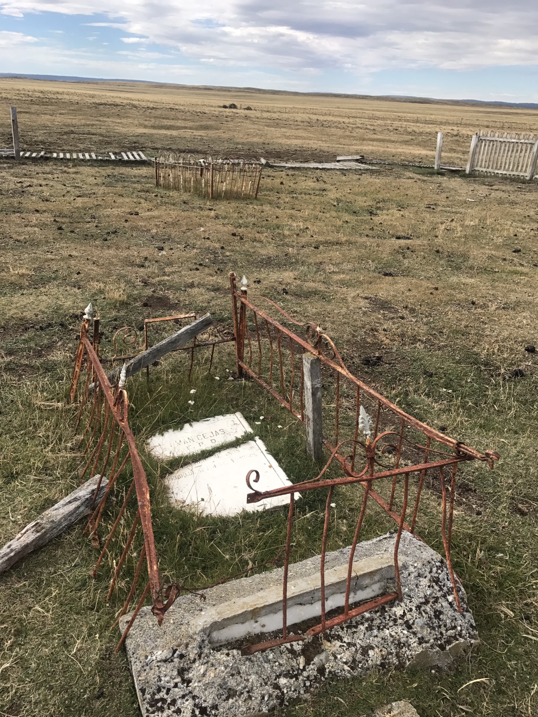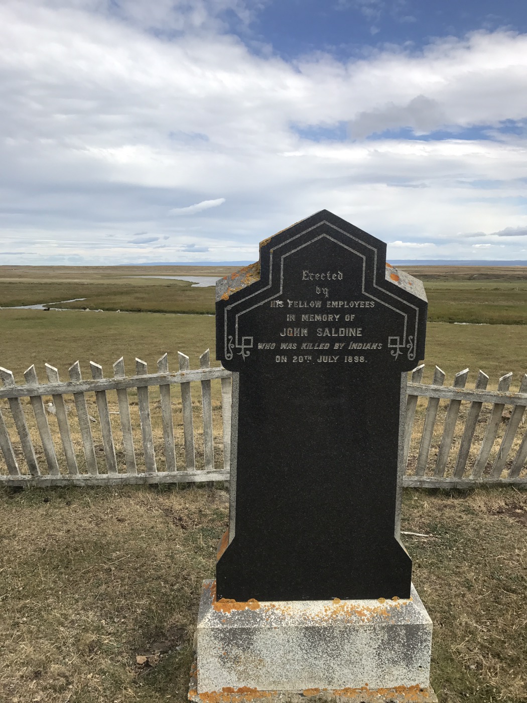 Once in Tierra del Fuego we decided to take a slight detour to see an old English graveyard indicated on our map. It had 4 or 5 impressive granite gravestone which told their own stories. All had died in the late 1800s, 2 men were killed by Indians, 2 by drowning in Useless Bay and a 26 year old lady died, maybe in childbirth? Such was the life of the early settlers in these areas. In the distance we saw a large abandoned estancia and surrounding smaller houses, also abandoned.