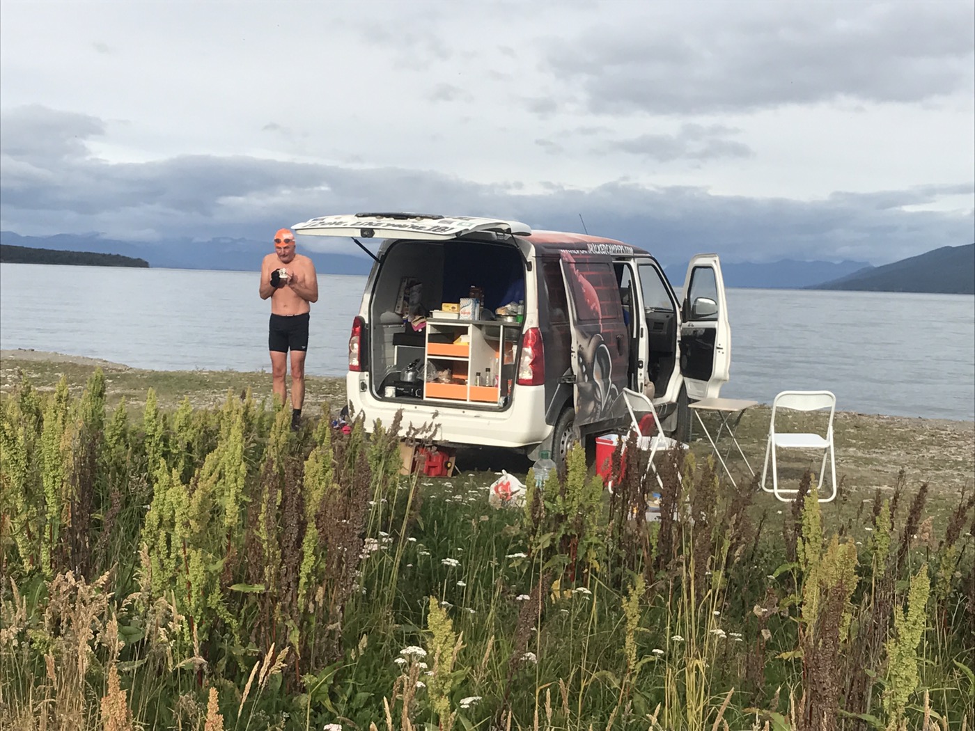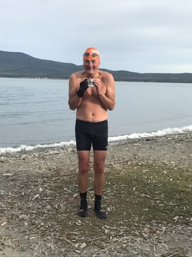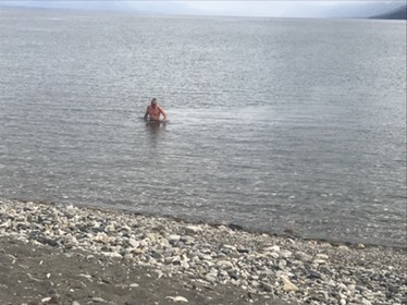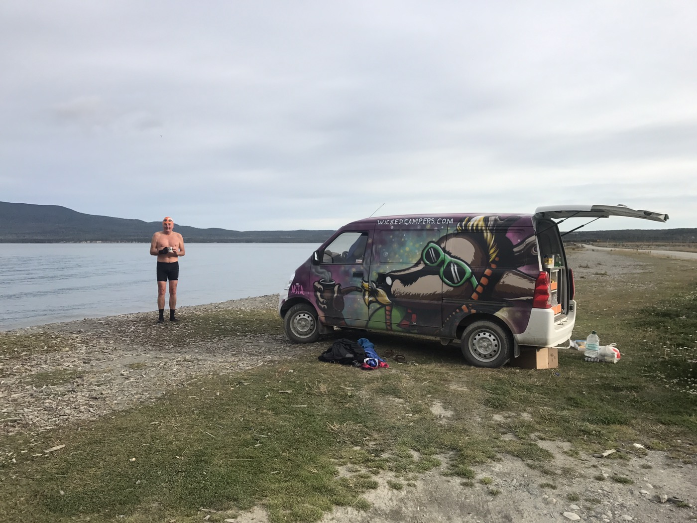 Most mornings we’d find the wind has subsided and today was no different. I awoke to see Neil in his swimmers, determined to have a swim in Tierra del Fuego. I was so impressed as he barely hesitated as he entered the cold lake. He claims to have enjoyed this rather invigorating start to the day, but grately appreciated the hot cup of tea handed to him as he emerged from the freezing water.