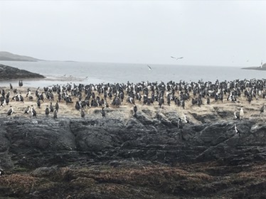 Suitably educated, we bought tickets for a boat trip to see the sea lions and cormorants on the islands in the channel. It was still raining and windy, so the boat was only half full and wonderfully warm. We quickly made friends with the other passengers on board as we bounced our way over the waves to the islands. The first was absolutely packed with busy noisy cormorants nesting and fishing. Our boat was able to steer extremely close to the rocks where we could see their nests and marvel at the way they would fly at huge speed skimming above the water.