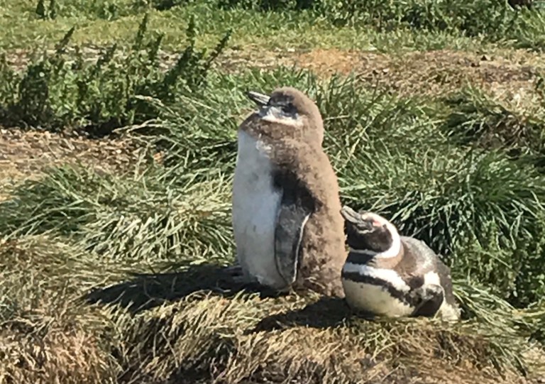 There were hundreds of tall black and white King and Magellan penguins to watch. We saw many many nests with mothers tending their big fluffy baby penguins who snuggled up to them. We watched how smoothly and fast they swam through the water fishing. A hilarious site was to see a teenage penguin try to run away from his nest in a very determined waddling fashion. His mother would waddle after him, through the colony and across the beach, as he’d swerve this way and that dodging other penguins to avoid capture by his mum hot on his tail. It was a great afternoon.