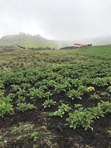 Then the bus turned inland towards green farmlands and rice paddy fields. The road twisted its way high into the Andes and as the temperature cooled, the rain started. And with the rain came landslides which seemed to be every 50m, to the extent that the main road was blocked into Cajamarca and the bus was forced to divert high into and above the clouds through picturesque farming villages. We were now in a sub tropical highland climate with rain in spring and summer (from October to March) and little or no rainfall the rest of the year. After was another stunning journey, it was dark by the time we arrived in Cajamarca so we ate our travel food and slept.