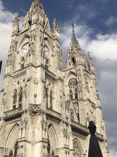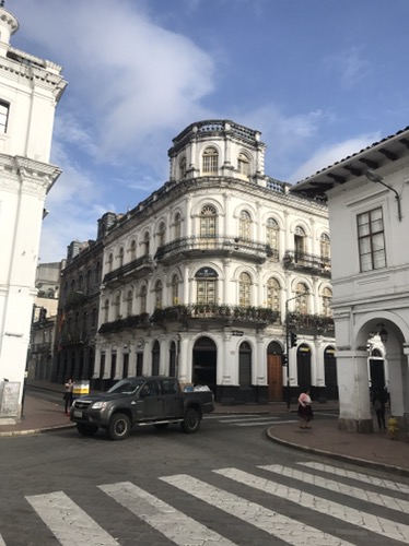 Too soon we are off to Quito by bus once more . Ceri finds the usual eclectic place in the old quarter overlooking the Basilica. We don’t have long in Quito as our flight leaves for Galapagos at silly o clock . I’m too excited I can’t sleep . First pic is where we stayed in Cuenca second floor on the corner .